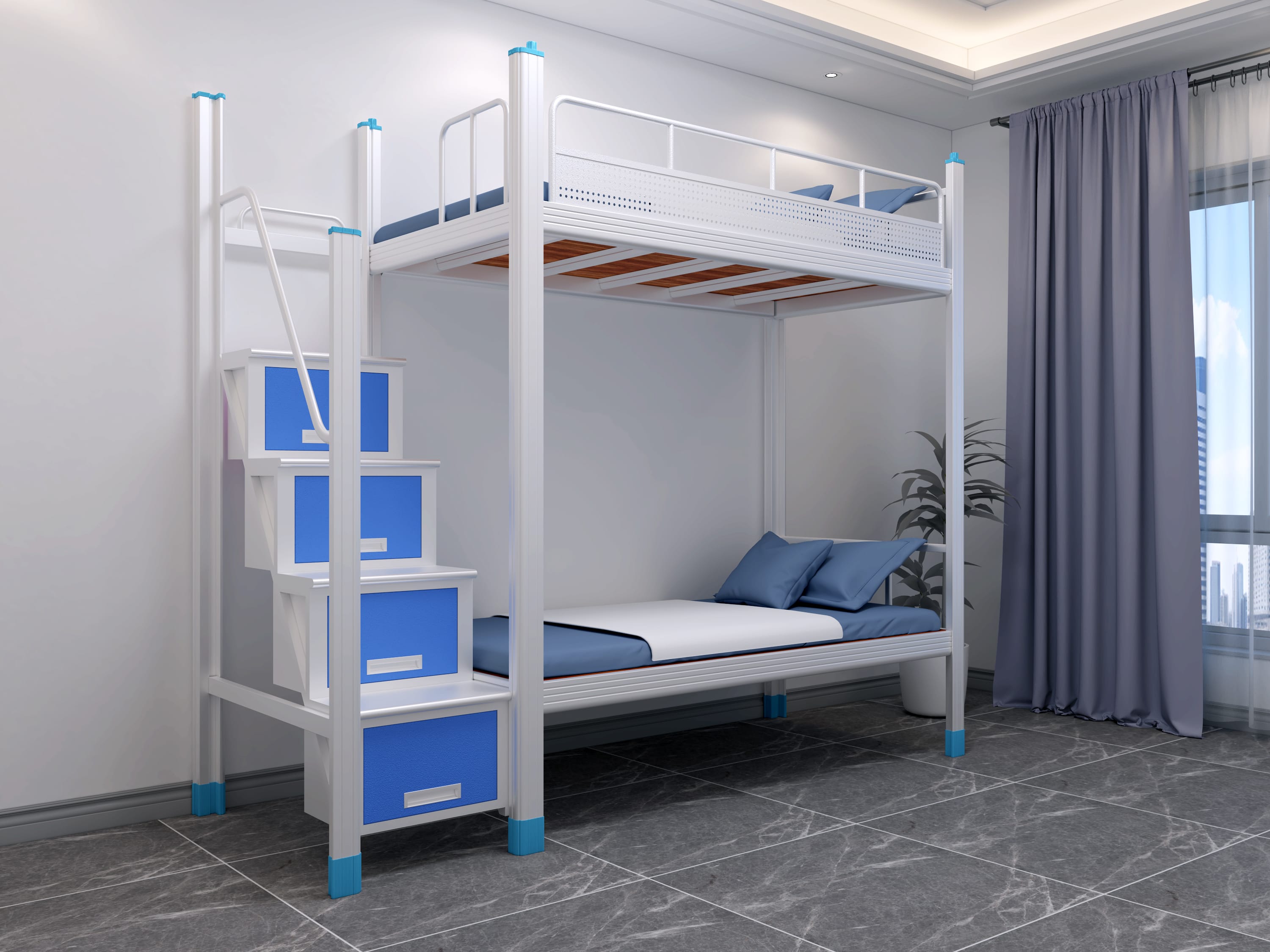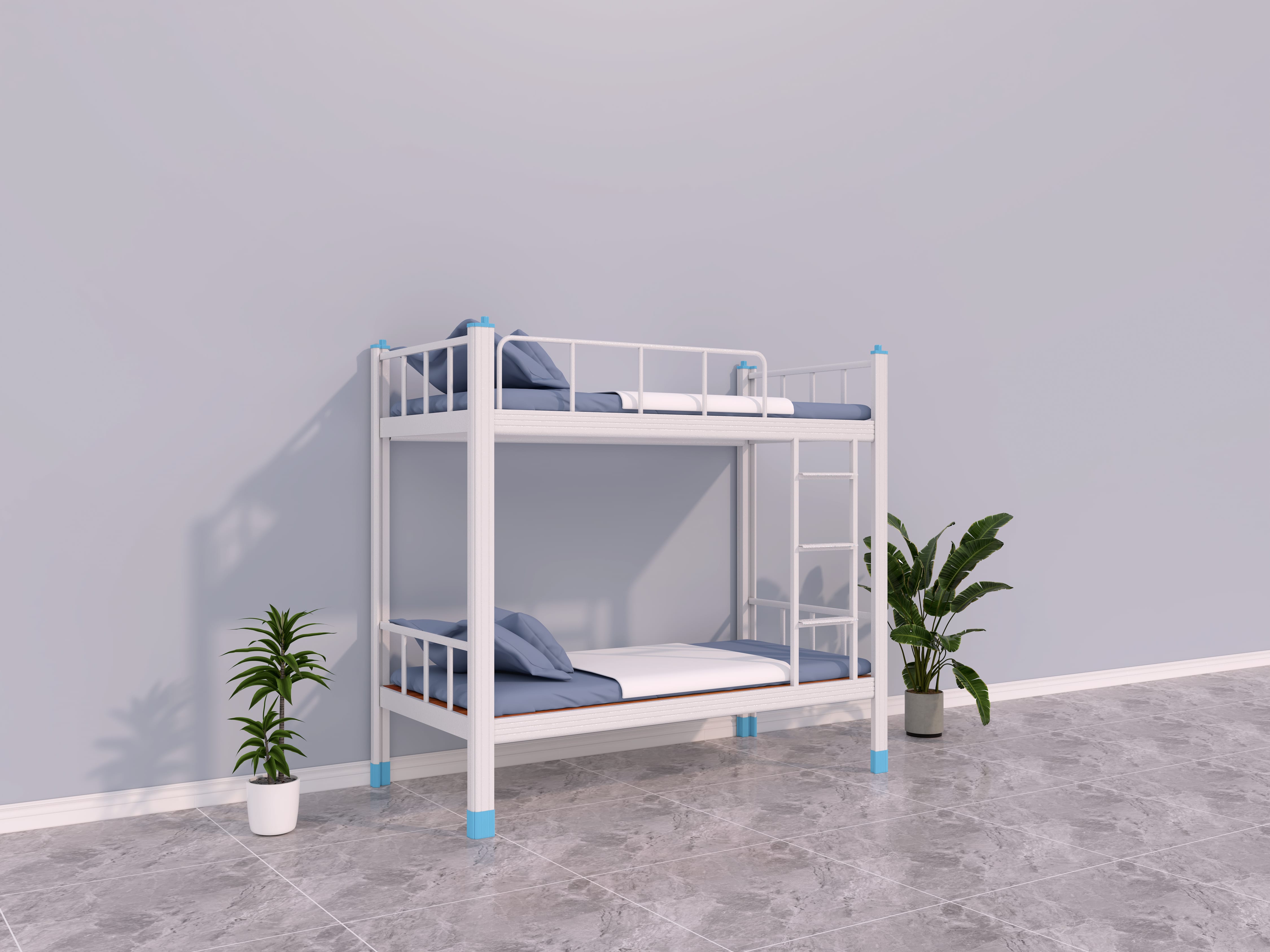 高度:宿舍大概在2.5米至3米之間,所以上下鐵鋪床高度一定要注意,宿舍床過(guò)高,上鋪員工睡覺(jué)或者活動(dòng)時(shí)容易碰到天花板,過(guò)低時(shí)在下鋪拿東西會(huì)直立不起腰或者直接撞到梁上,普通設(shè)計(jì)高度為1800mm就可以了。
