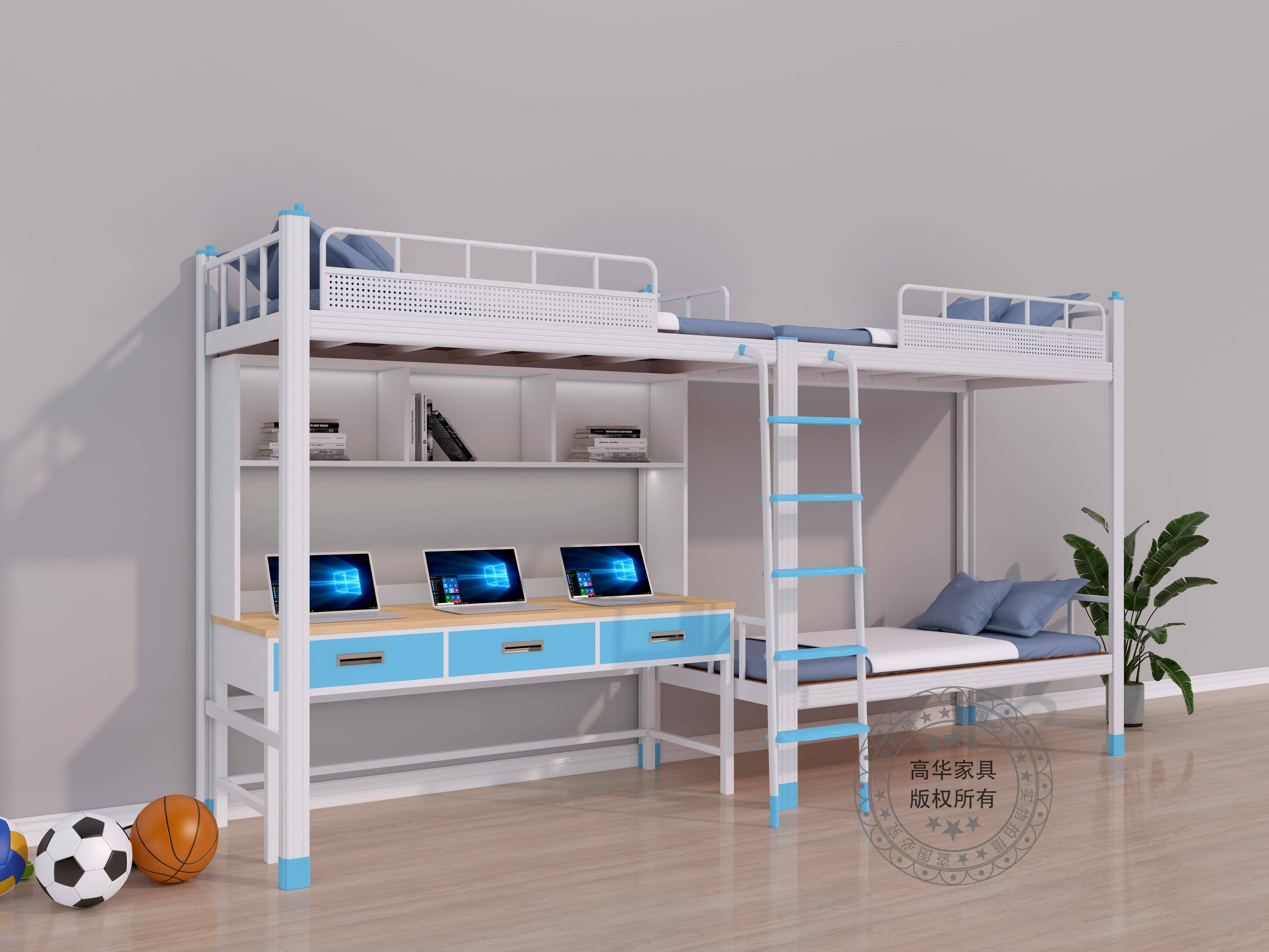 廣東高華家具學(xué)生公寓床廠家的公寓床學(xué)生床-GH-G-037款式新穎,功能實用,采用環(huán)保0甲醛烤漆,無論悶熱潮濕都恍然如新。 工藝設(shè)計上,采用先進的卡口式連接,這種連接的優(yōu)點在于承重性強,穩(wěn)固性好,上下床時非常平穩(wěn),不易搖晃,安全舒適,整張床可承重500公斤,經(jīng)久耐用且十年質(zhì)保,可以適應(yīng)各類宿舍